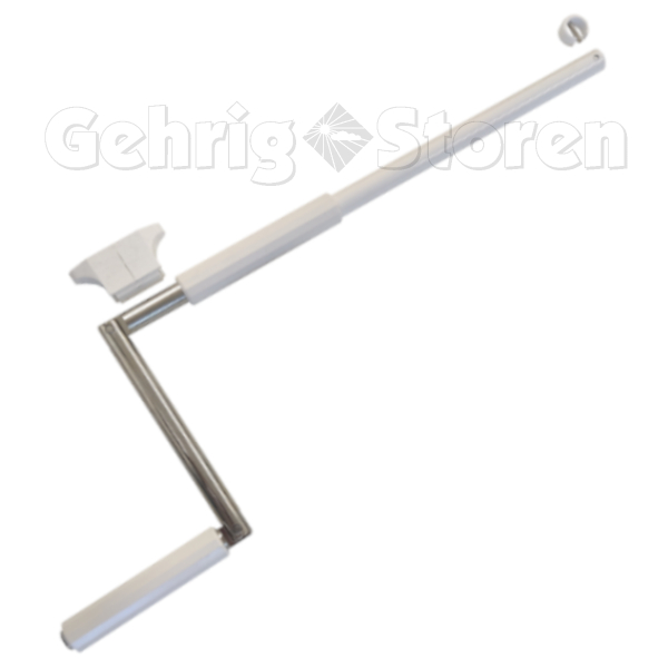 Die Kurbelstange aus Aluminium mit Stahlgriff wird mit einem Sicherungsclip am Kreuzgelenk befestigt, damit die Store herauf oder hinunter gelassen werden kann.