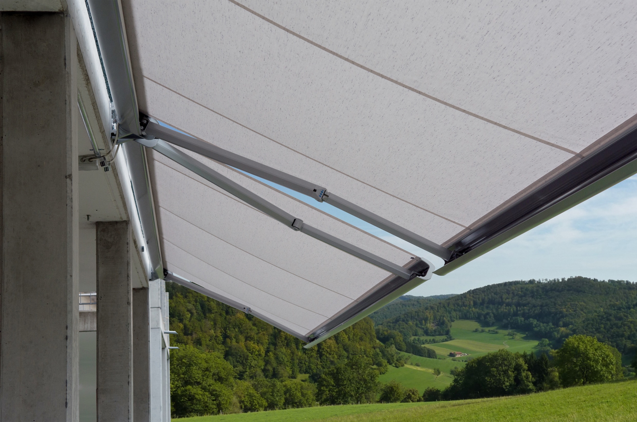 Die Selbstragende, komplett geschlossene Aluminiumkassette bietet optimalen Schutz für Tuch und Gelenkarme. Durch die maximalen Abmessungen bis 5 m Breite und 2.25 m Ausladung eignet sich die PURABOX BX1500 ideal für Balkone und Loggias im anspruchsvollen Objektbereich sowie bei Reihen- und Mehrfamilienhäusern.